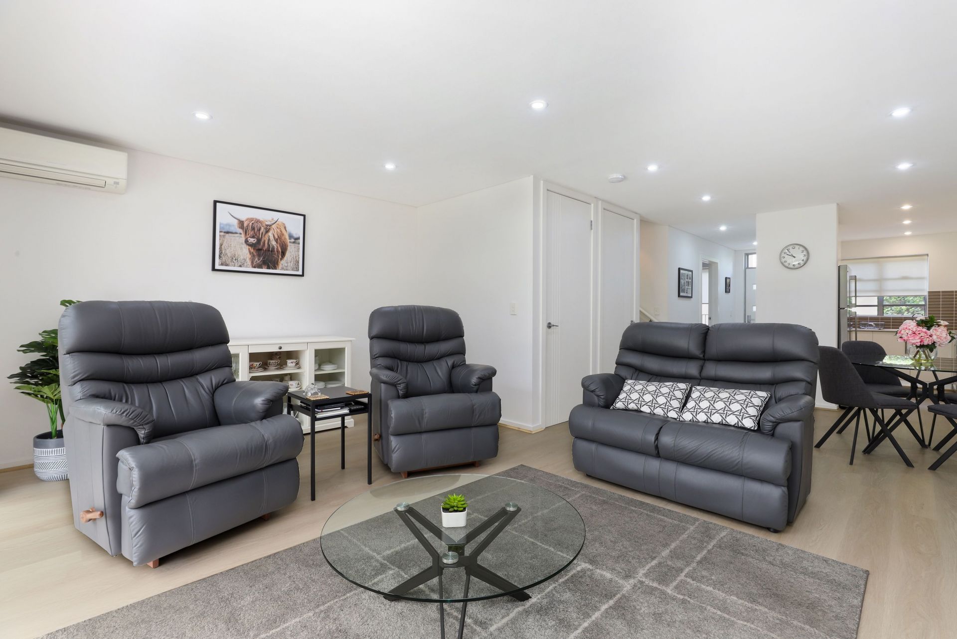 - Open plan living and dining area with an abundance of natural light and split system A/C