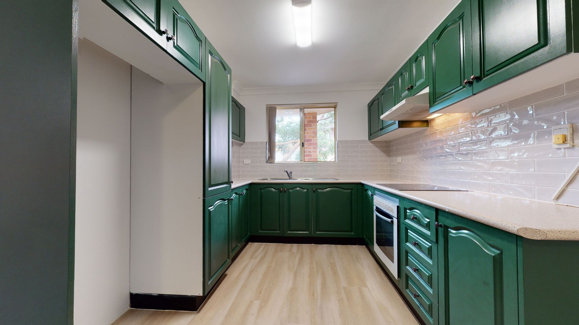 -Neat practical kitchen with plenty of natural light and cupboard space
