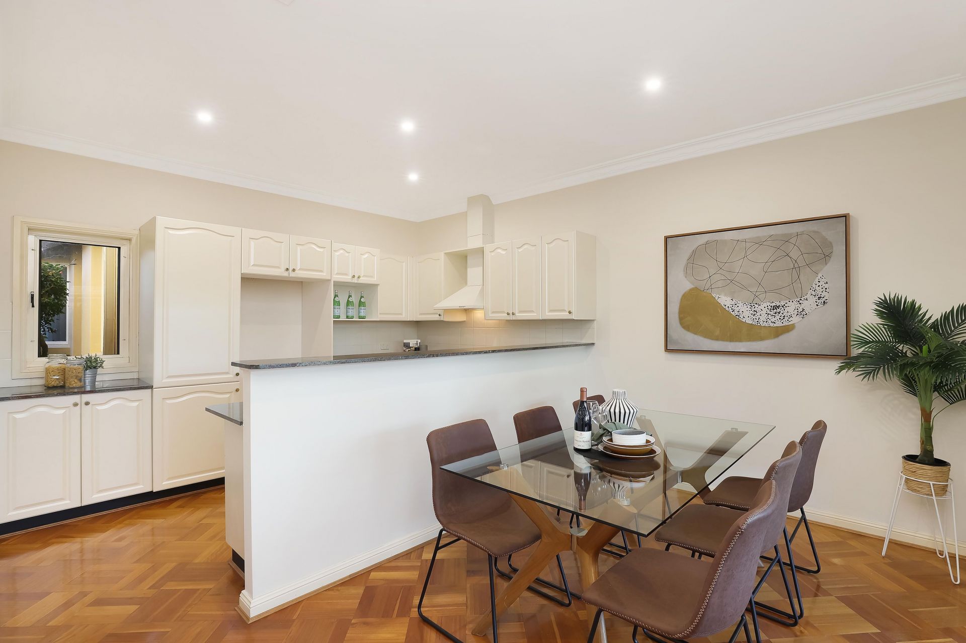 - Functional kitchen with granite benchtops, ample cupboard space, dishwasher and gas cooking