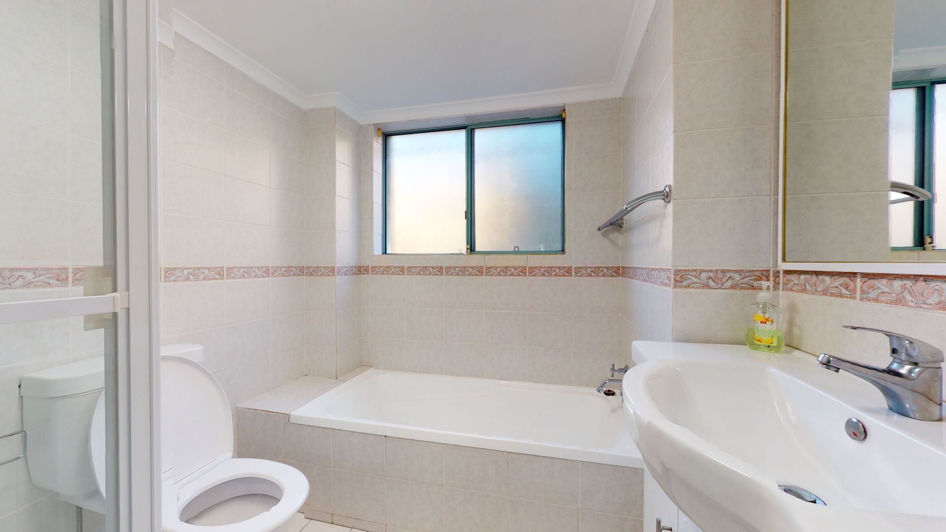 -Bright bathroom with a separate shower and bath
