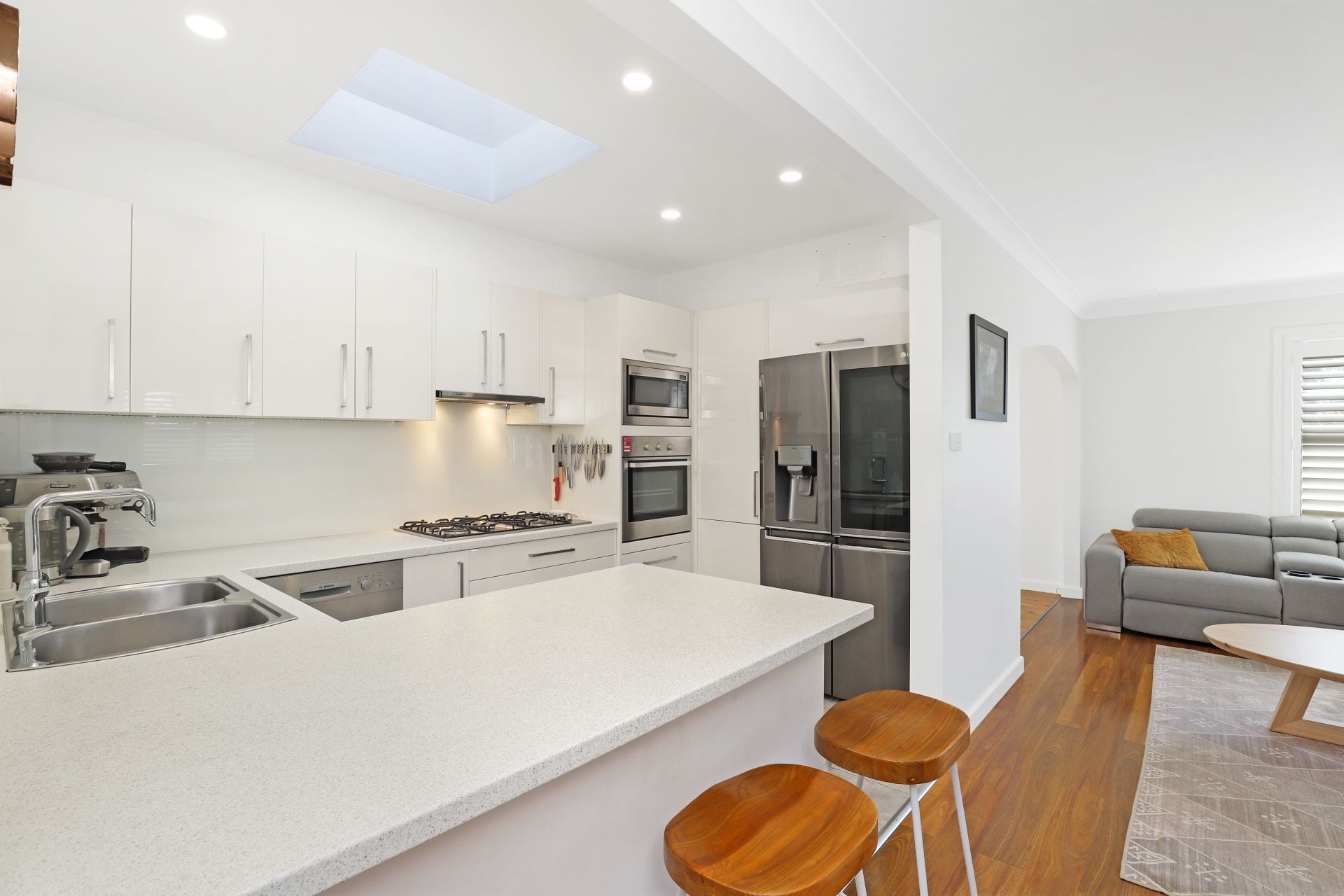 - Modern laundry with ample cupboard and bench space added bonus of extra toilet