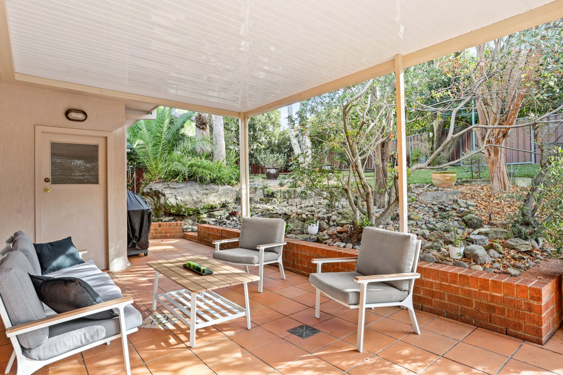 - Covered entertainers' courtyard and established back garden