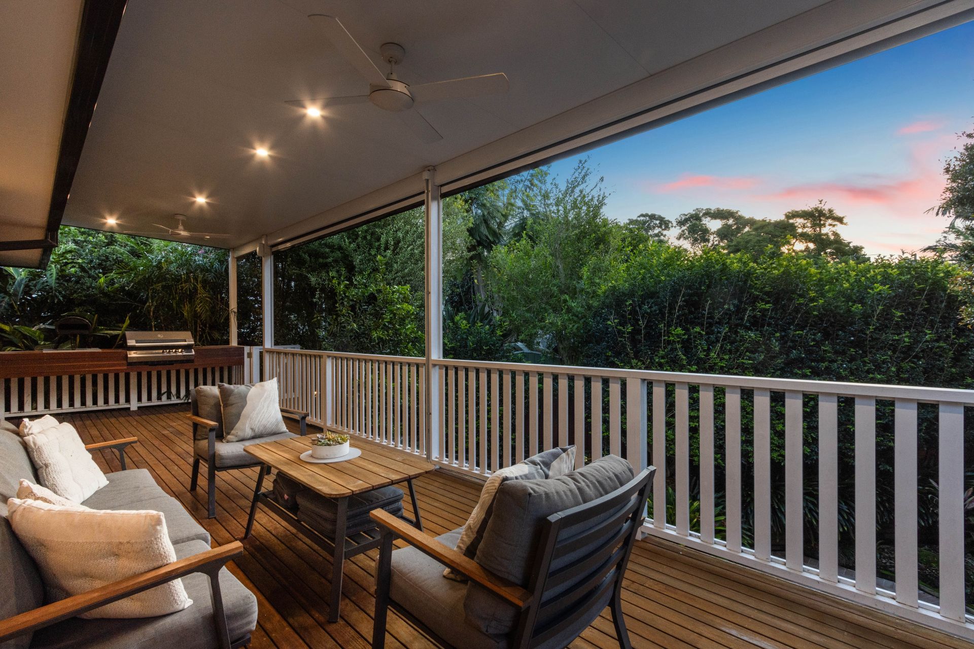 -Expansive covered rear deck with motorised block out screens, ceiling fans and built in bbq