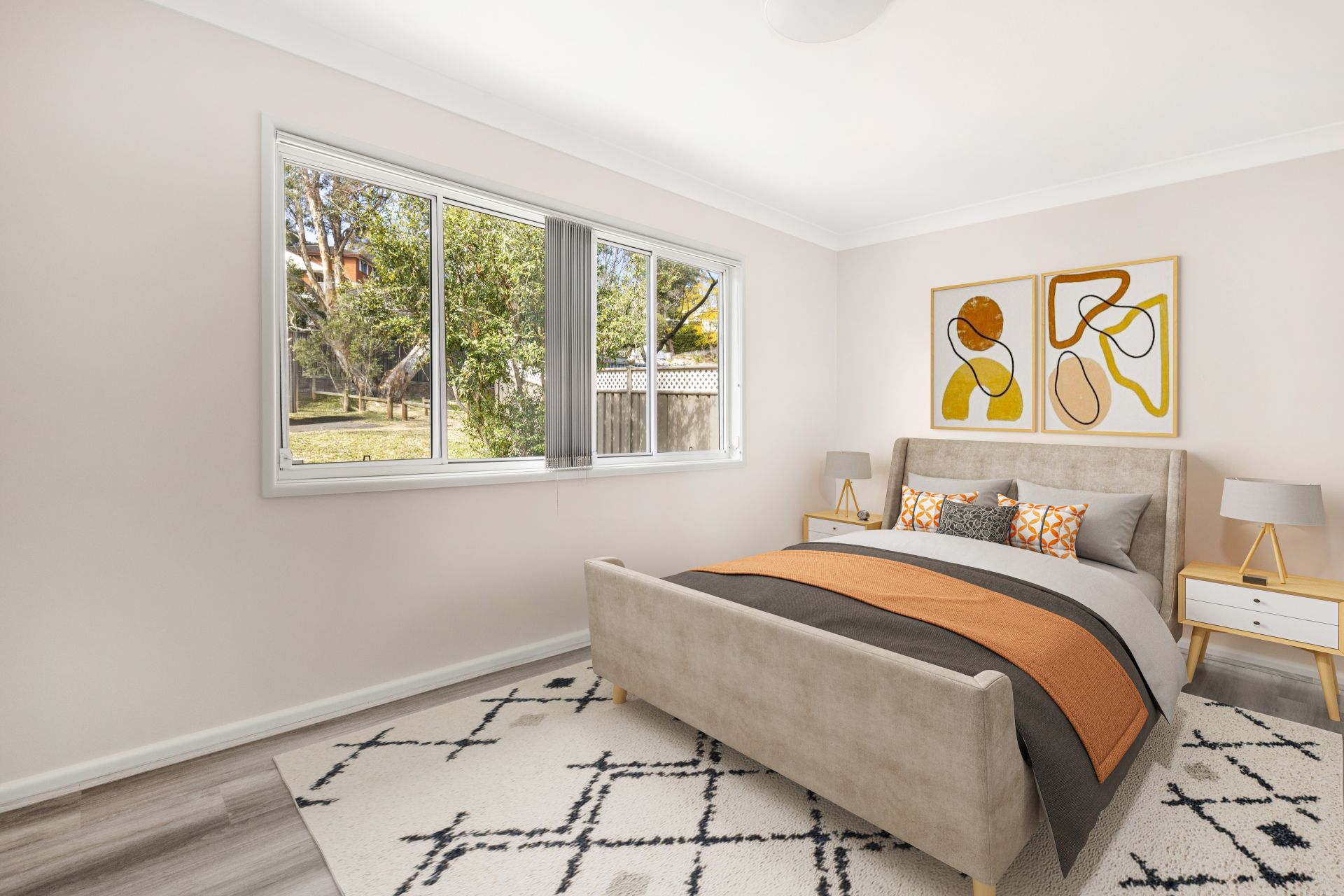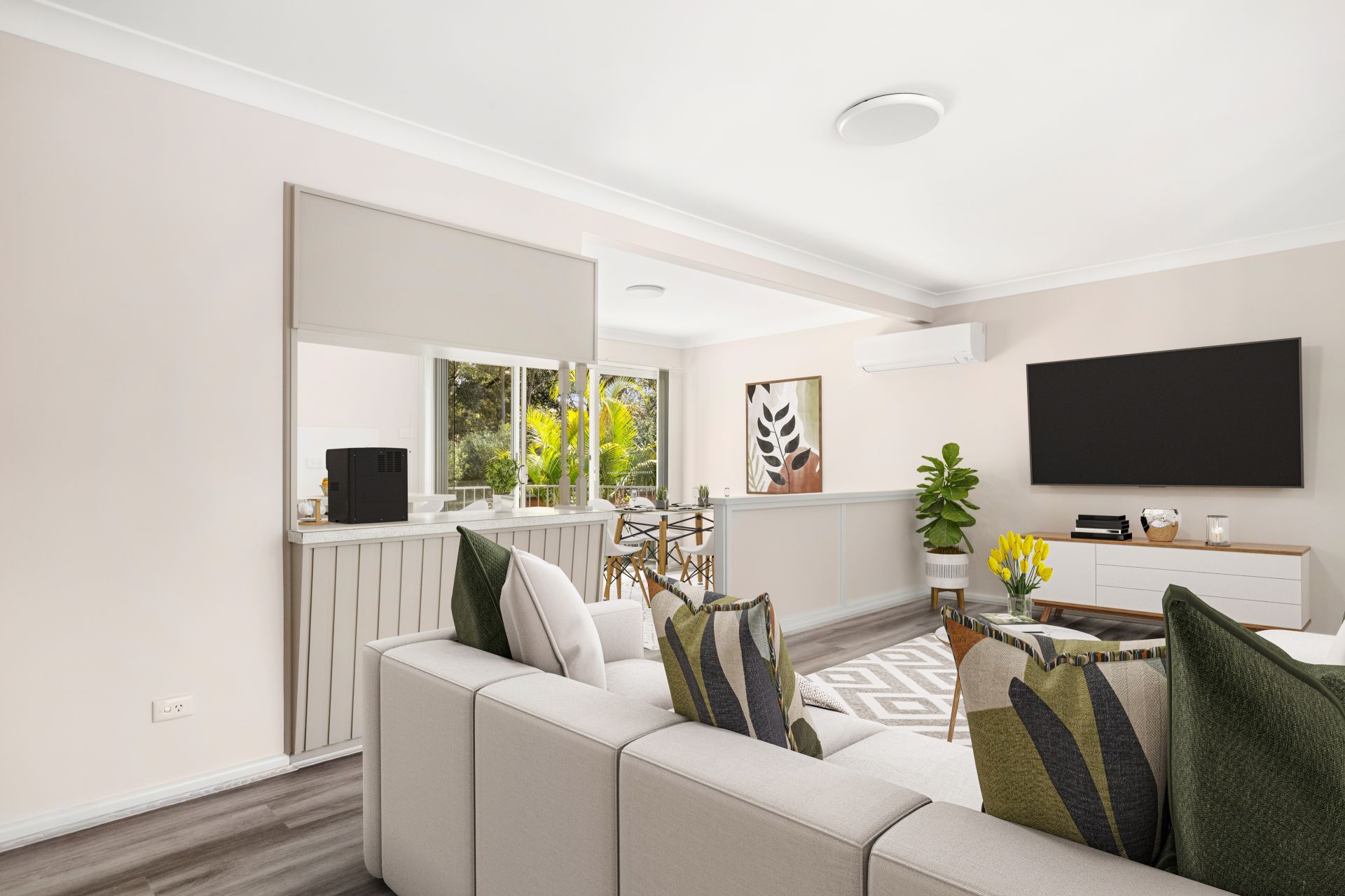 - Open plan living with timber look flooring throughout