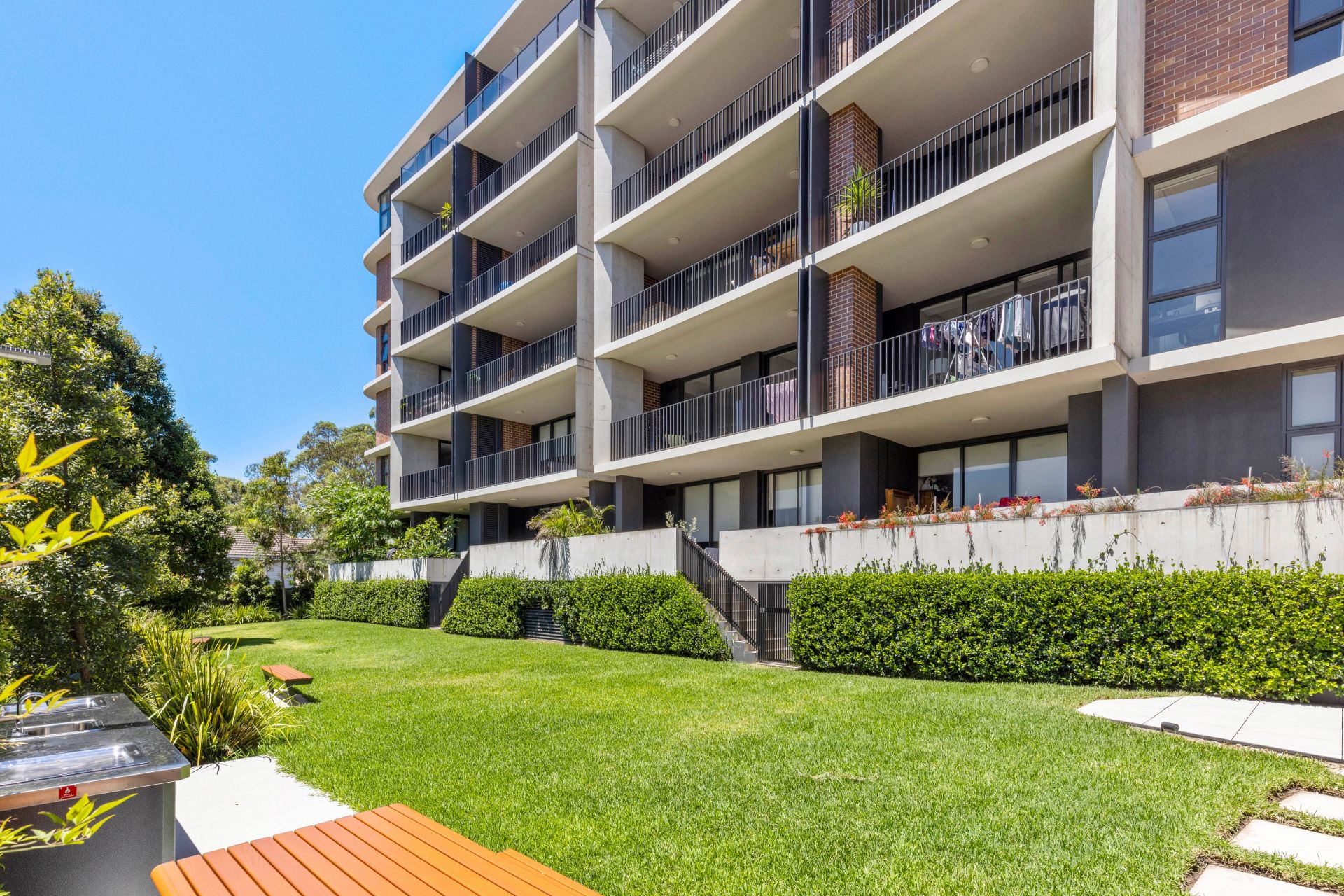 - The communal grassed entertaining area that includes BBQ facilities