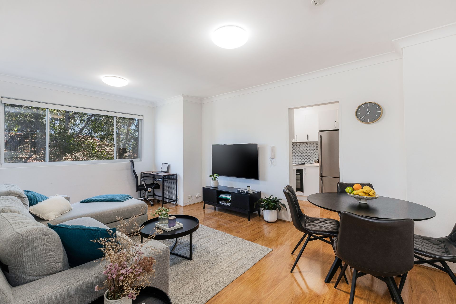 - Open-plan living and dining with timber-look flooring and A/C