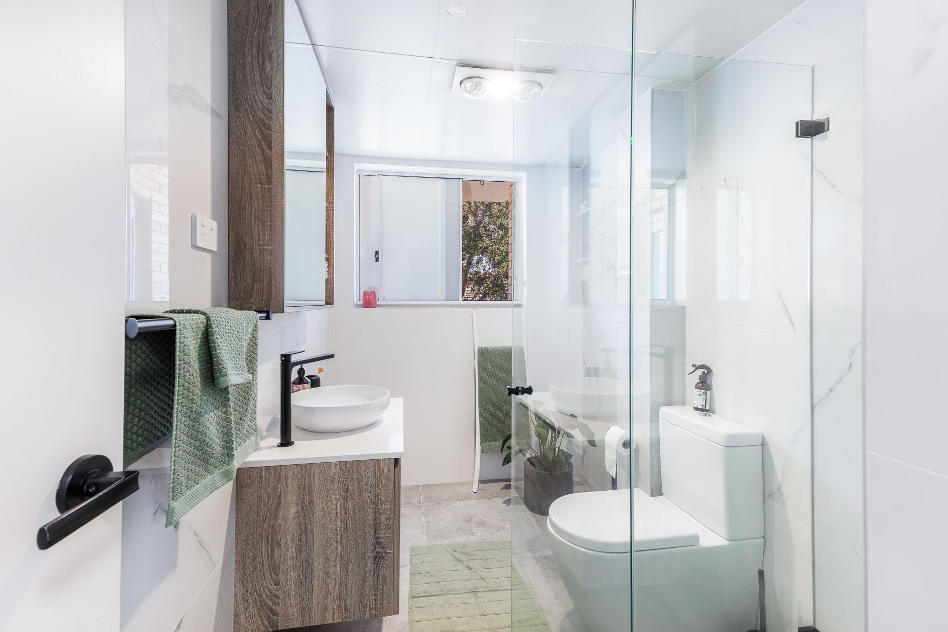 - Well-appointed and stylishly renovated bathroom with oversized shower