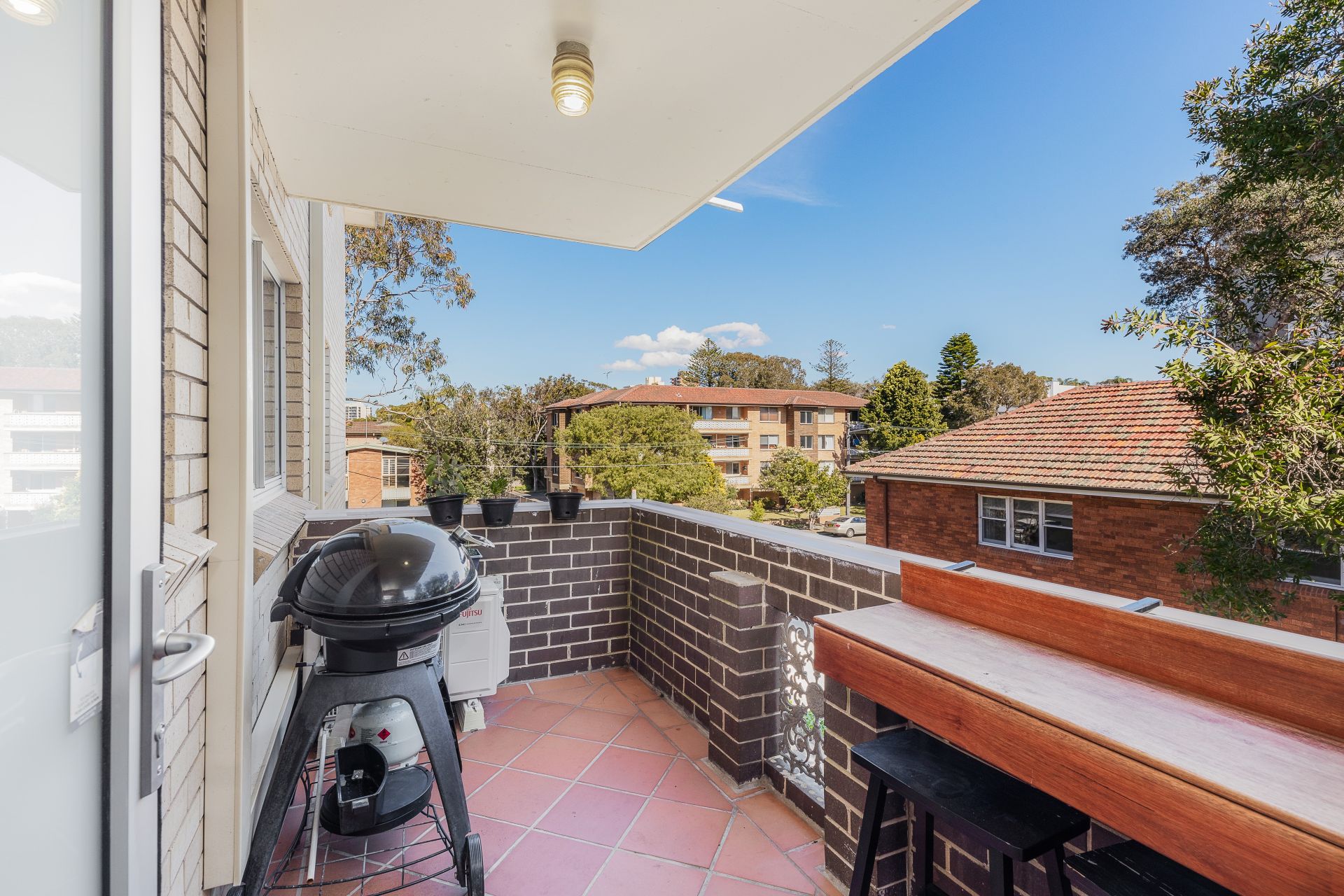 - West-facing covered balcony flooded with afternoon light